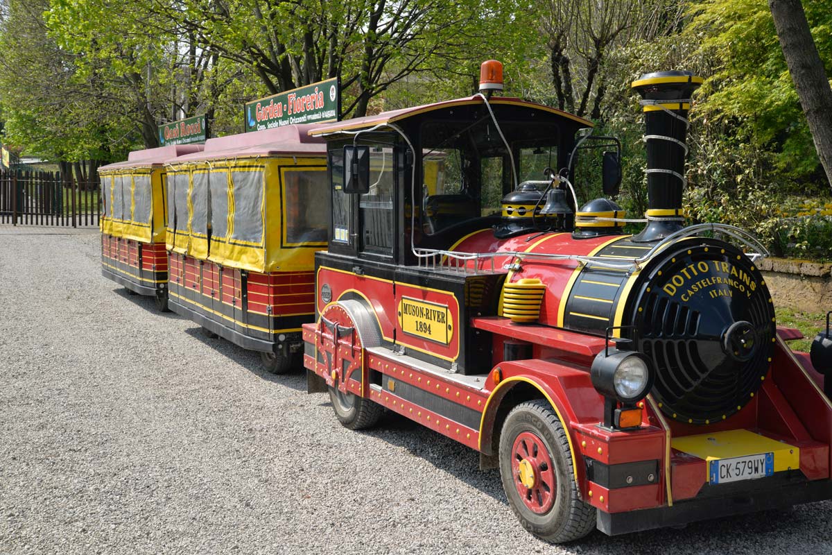 All’interno dell’area è presente un trenino a due carrozze che con una capienza di 40 persone offre la possibilità di scoprire il parco in modo divertente e alternativo. Il trenino segue il perimetro del parco e non fa fermate intermedie. Le carrozze sono dotate di ampie finestre da cui è possibile godersi un momento di relax e di stupore, che piacerà a grandi e piccini.