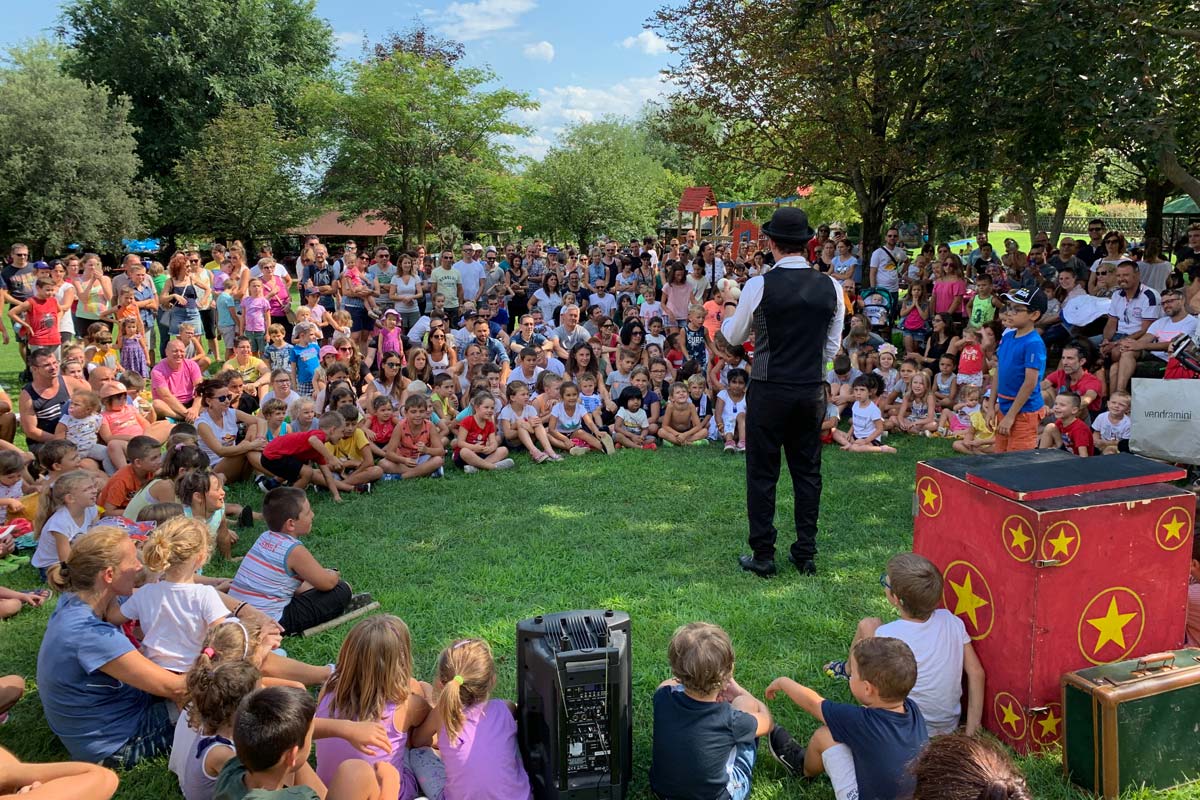 Ogni domenica è previsto uno spettacolo di animazione curato dal nostro personale ma anche da associazioni, liberi professionisti e animatori del territorio che vengono coinvolti per offrire spettacolo e intrattenimento (giocoleria, magia e comicità) ai nostri piccoli visitatori.